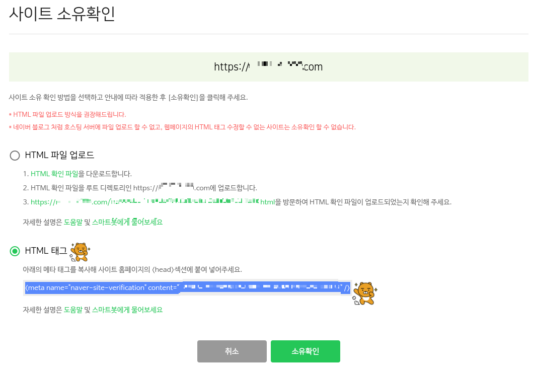 ์ค๋ช ์ ๋ณด์๋ฉด ์๋์ ๋ฉํํ๊ทธ๋ฅผ ๋ณต์ฌํด ํํ์ด์ง์ <head> ์น์ ์ ๋ถ์ฌ๋ฃ๊ธฐ๋ฅผ ํ๋ผ๊ณ ์์ฑ๋์ด ์์ต๋๋ค.