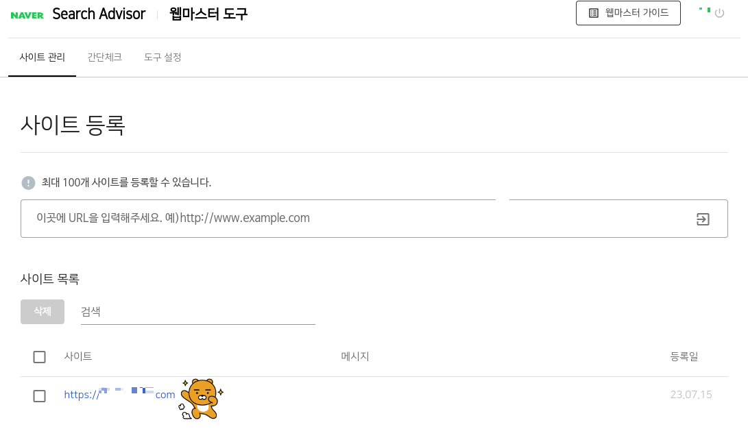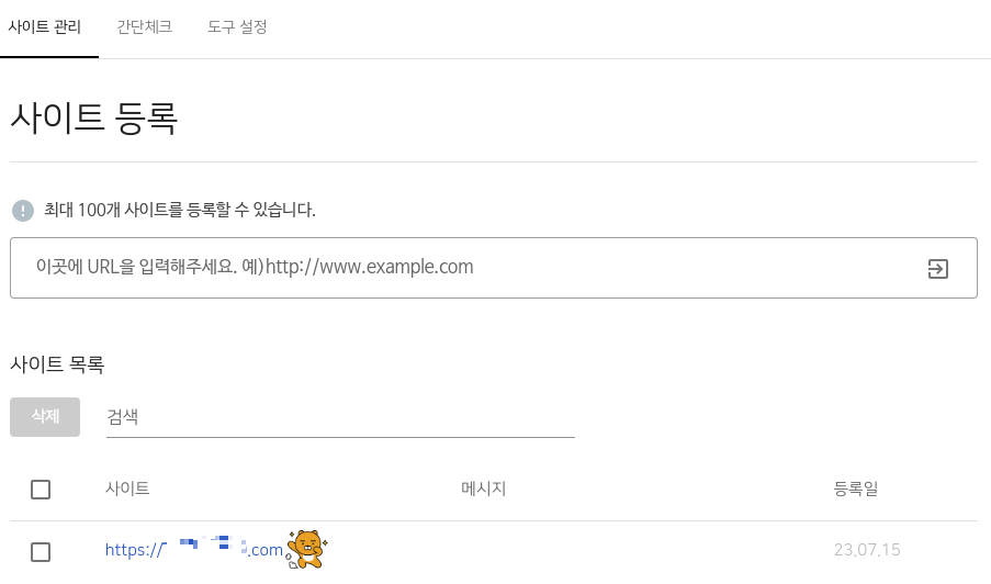 ์ฌ์ดํธ ๋ฑ๋ก๋ ๊ฒ ํ์ธ