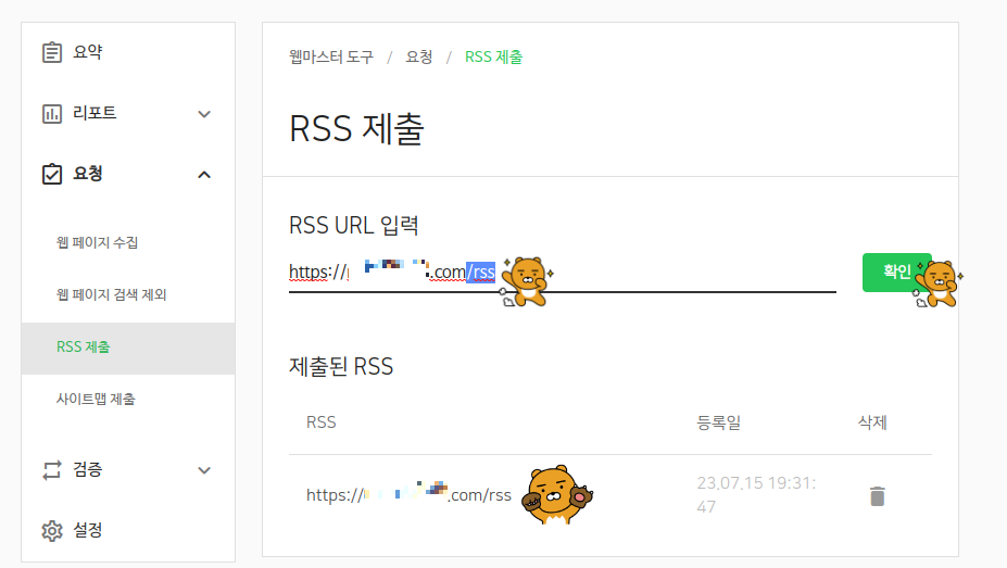 ๊ทธ๋ ๊ฒ ์ ๋ ฅ ํ ํ์ธ ๋ฒํผ์ ๋๋ฅด๋ฉด ์ ์ถ๋ RSS์ ๋ณด์ฌ์ง๋๋ค
