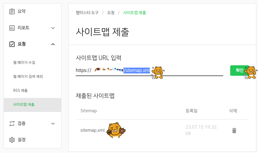 ์ฌ์ดํธ๋งต๋ ๋ง์ฐฌ๊ฐ์ง๋ก ์์ ์ URL ์ ๋ ฅ ํ, /sitemap.xml ์ ๋ถ์ฌ์ค๋๋ค.