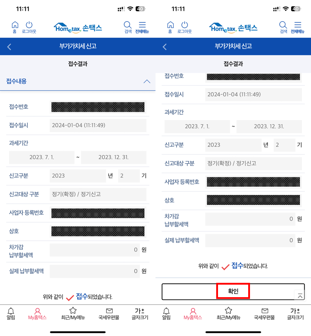 ํ์ธ ํ [์ ๊ณ ์ ์ ์ถ] ์ ํด๋ฆญํ๋ค.