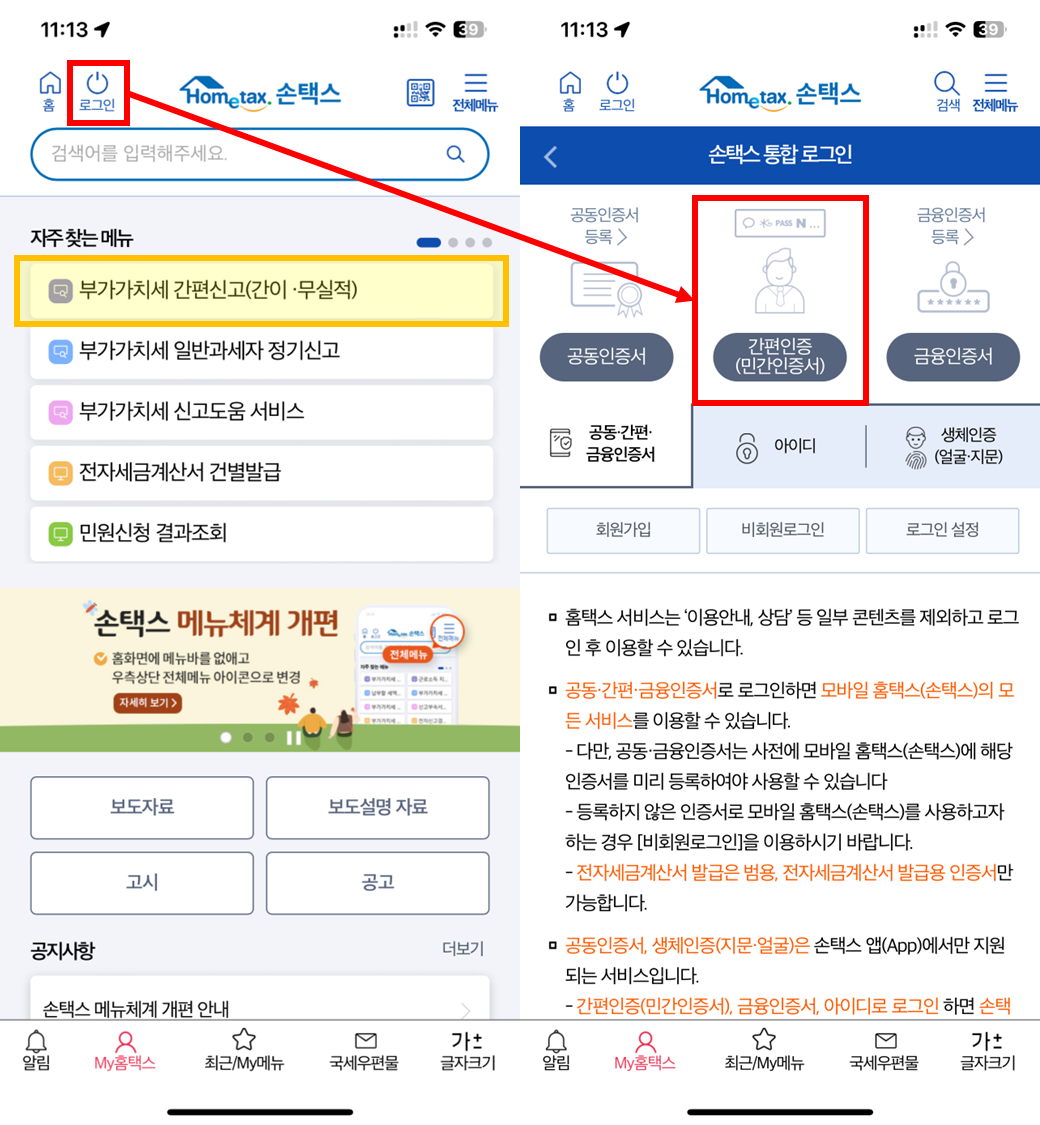 ํํ์ค์์๋ ๋ค์ํ ๋ก๊ทธ์ธ์ ์ง์ํด์ฃผ๋๋ฐ, ๊ทธ ์ค [๊ฐํธ์ธ์ฆ(๋ฏผ๊ฐ์ธ์ฆ์)]๋ฅผ ์ฌ์ฉ