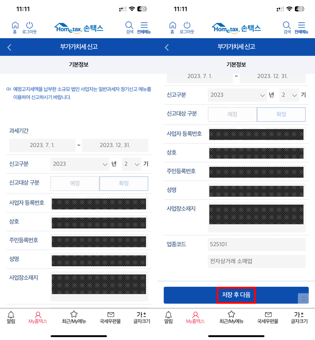 ๋ด์ฉ ํ์ธ ํ [์ ์ฅ ํ ๋ค์] ํด๋ฆญ