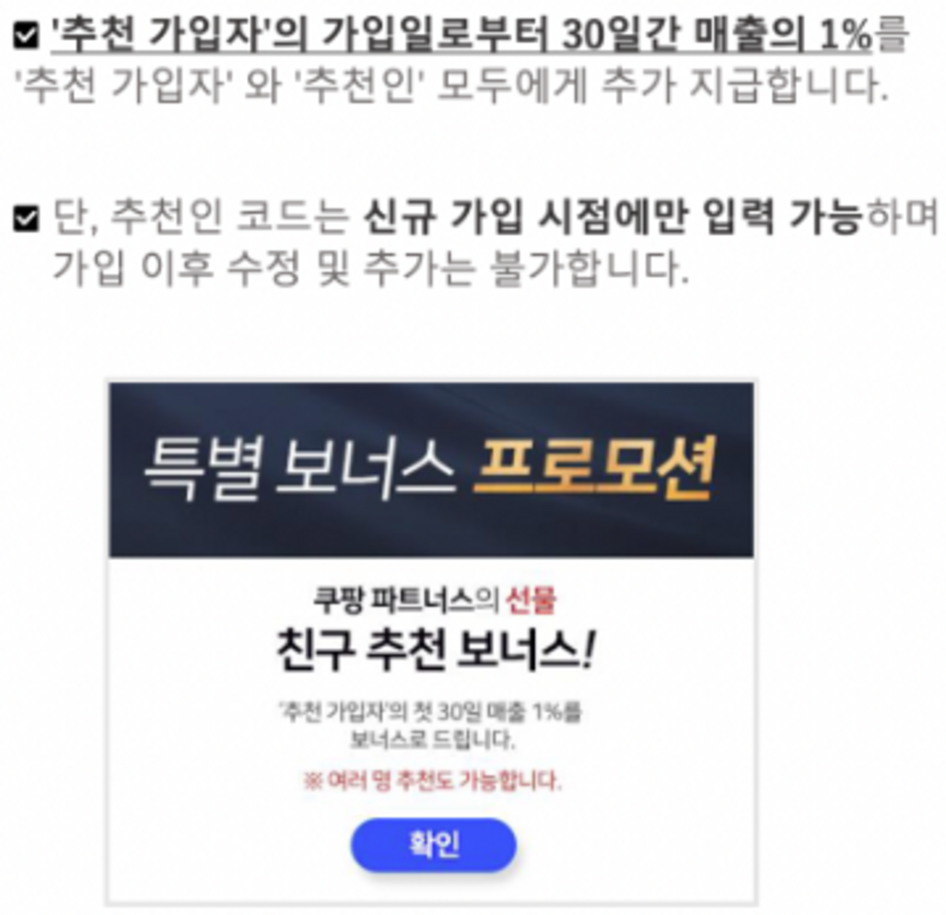 ์ํ๋ง๋ค ํ๋งค๊ธ์ก์ n%๋ฅผ ์ง๊ธ๋ฐ๊ฒ ๋๋๋ฐ, ๊ฑฐ๊ธฐ์ ์ถ๊ฐ๋ก 1%๋ฅผ ๋ฐ์ ์ ์๋ ๋ฐฉ๋ฒ์ ์ฟ ํก ํํธ๋์ค ๊ฐ์ ์ ์ถ์ฒ์ธ์ ์ ๋ ฅํ๋ ๊ฒ์ ๋๋ค !