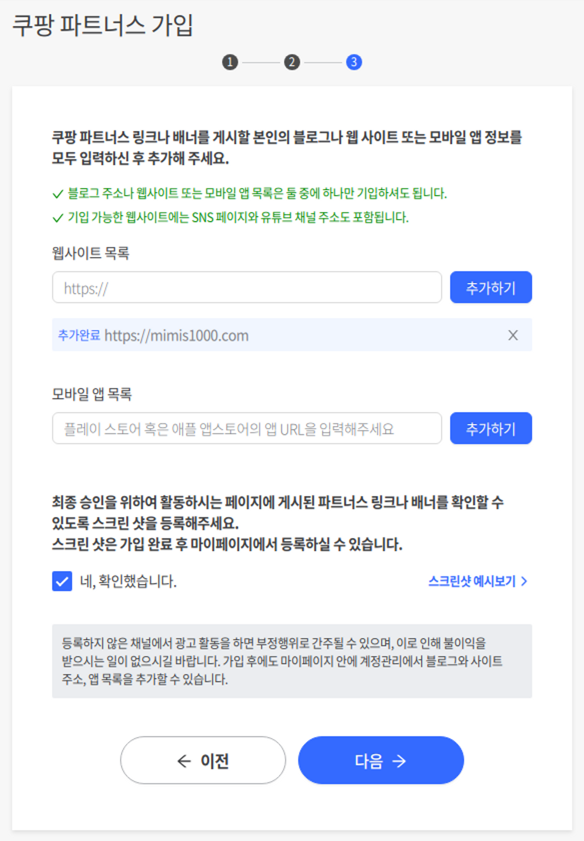 3. ์ฟ ํก ํํธ๋์ค ๋งํฌ/๋ฐฐ๋๋ฅผ ๊ฒ์ ํ ๊ณณ์ ๋ํ ์ ๋ณด ์ ๋ ฅ
