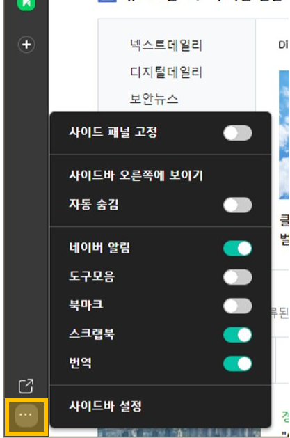 μ¬μ΄λλ°μ μμ΄μ½μ νλ² λ λλ₯΄λ©΄ λ€μ μ¬μ΄λλ°μ μ°½μ΄ μ¬λΌμ§λλ€.