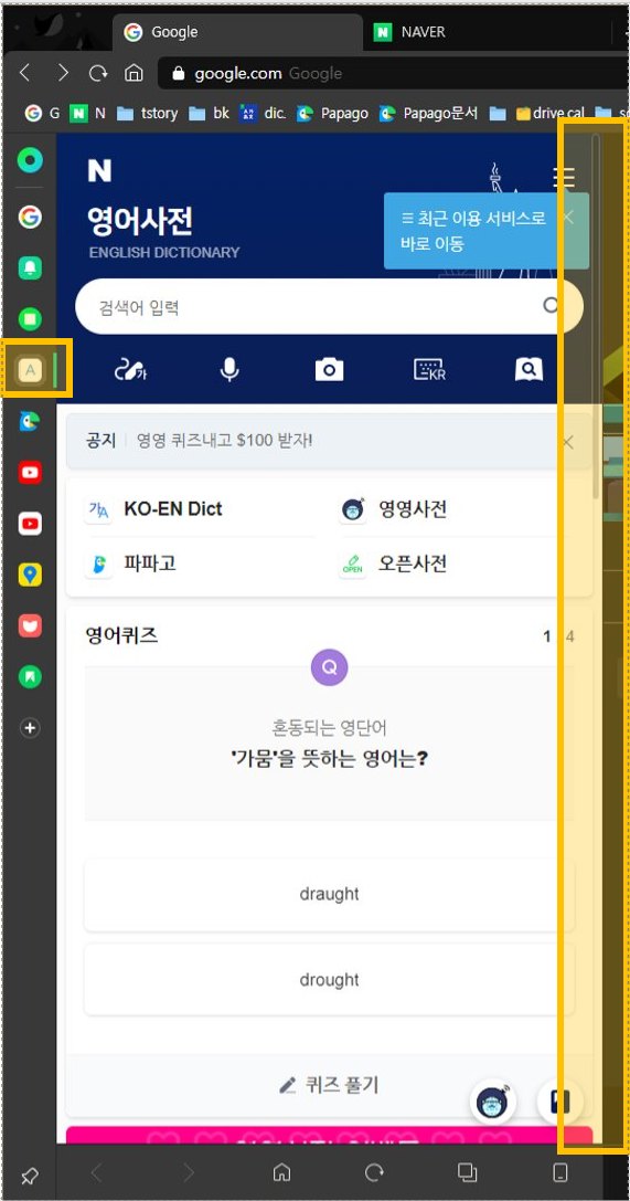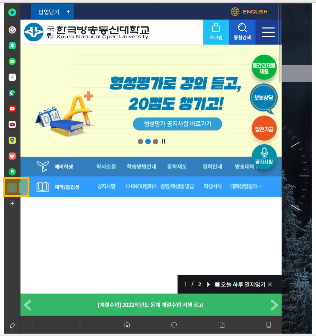 μμ λͺ¨μ μμ΄μ½μ λλ¬ κ³ μ μν€λ©΄, ν μ°½μ λλ₯΄κ² λμ΄λ μ¬μ΄λλ° μ°½μ΄ λ«νμ§ μμ΅λλ€.