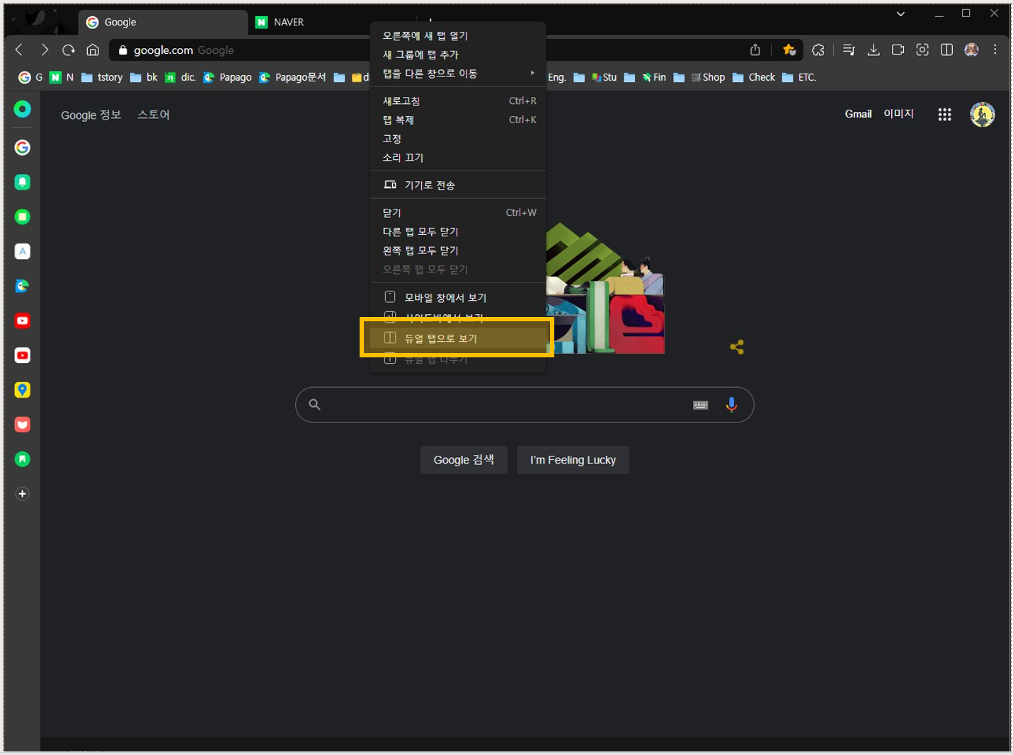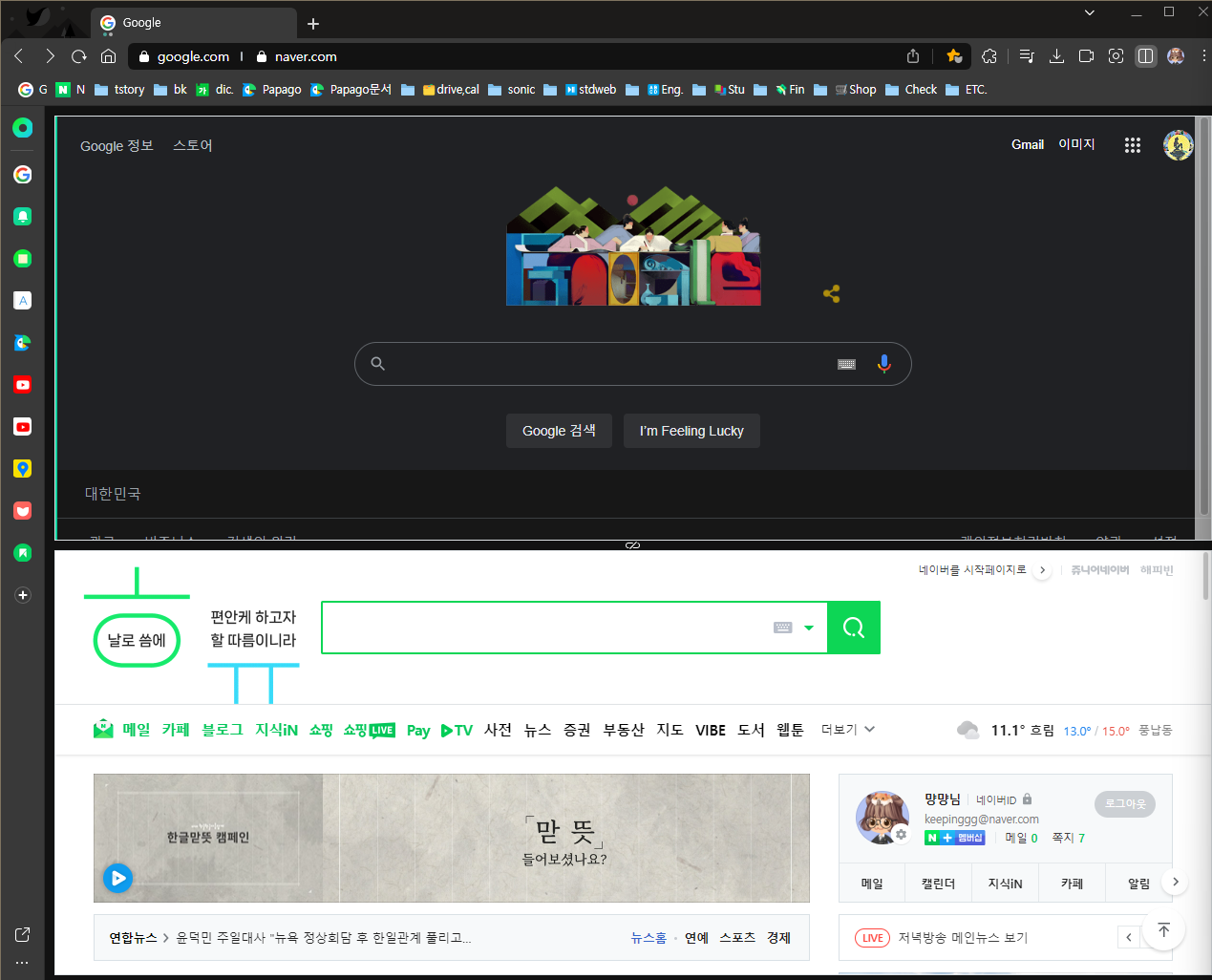 μλ₯Ό λ€μ΄ κ΅¬κΈ ννμ΄μ§μ λ€μ΄λ² ννμ΄μ§λ₯Ό λμ°κ² λ€κ³ κ°μ νκ² μ΅λλ€.