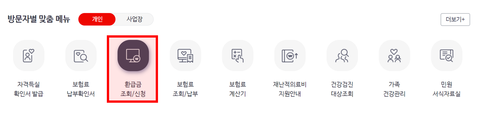 κ΅λ―Όκ±΄κ°λ³΄ν ννμ΄μ§μ λ©μΈ(ν) νλ©΄ μ€κ°μ μλ λ°©λ¬Έμλ³ λ§μΆ€ λ©λ΄μμ
