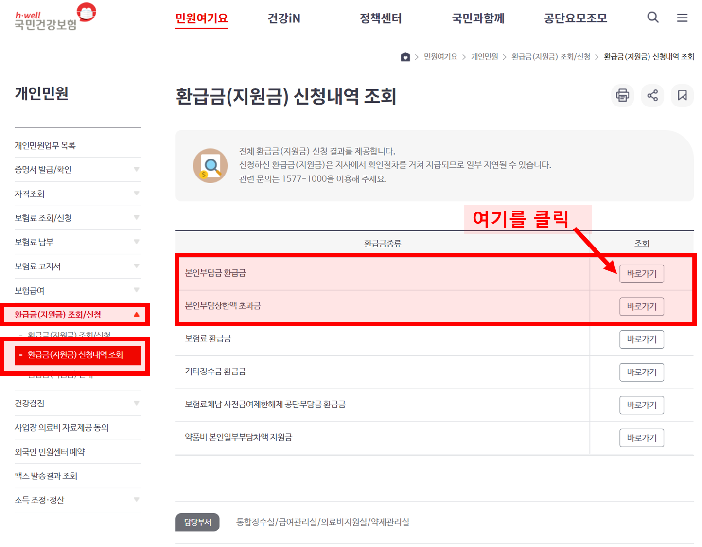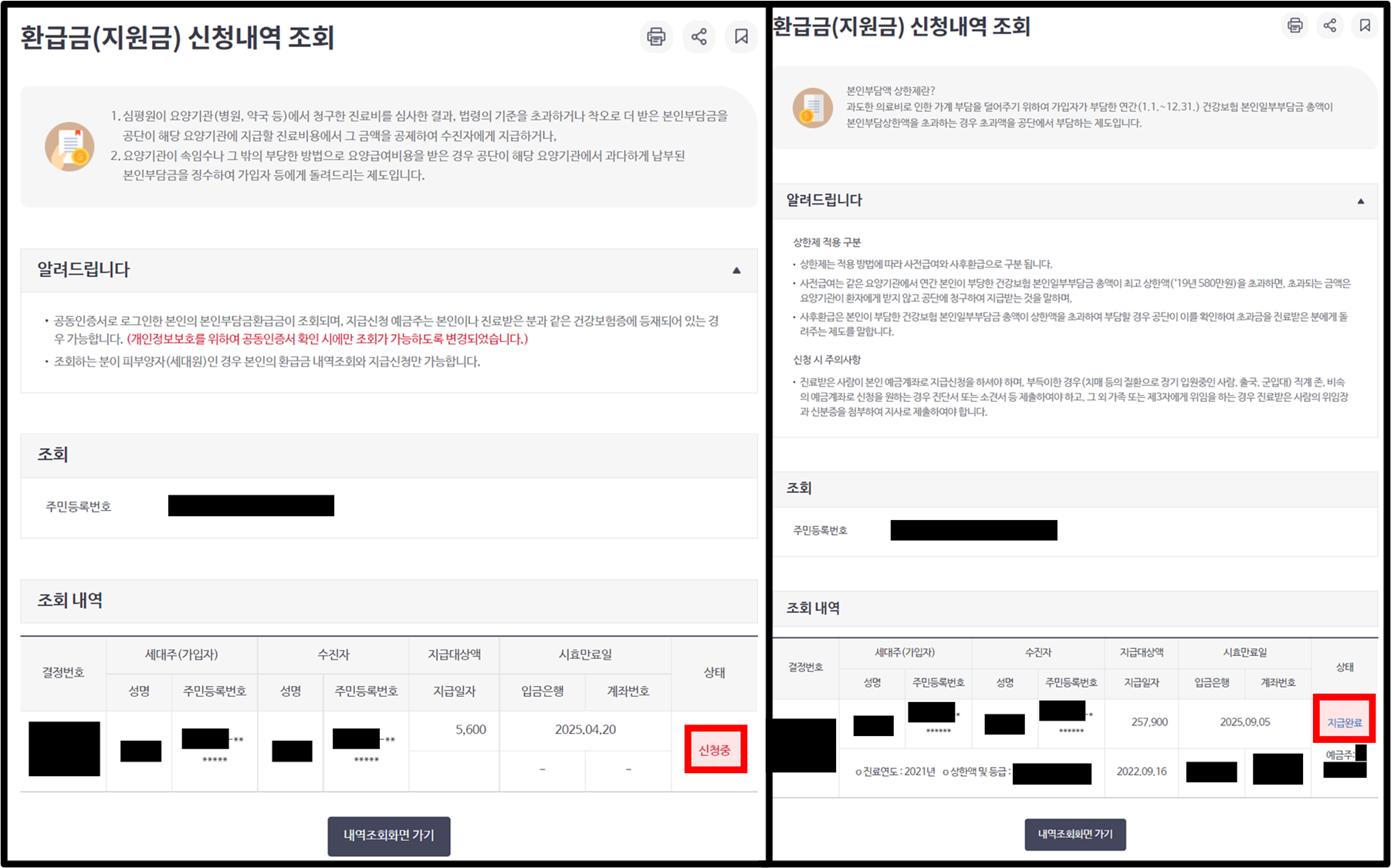 μλ£λ³΄ν νκΈκΈ μ μ²κ²°κ³Ό μ‘°ν