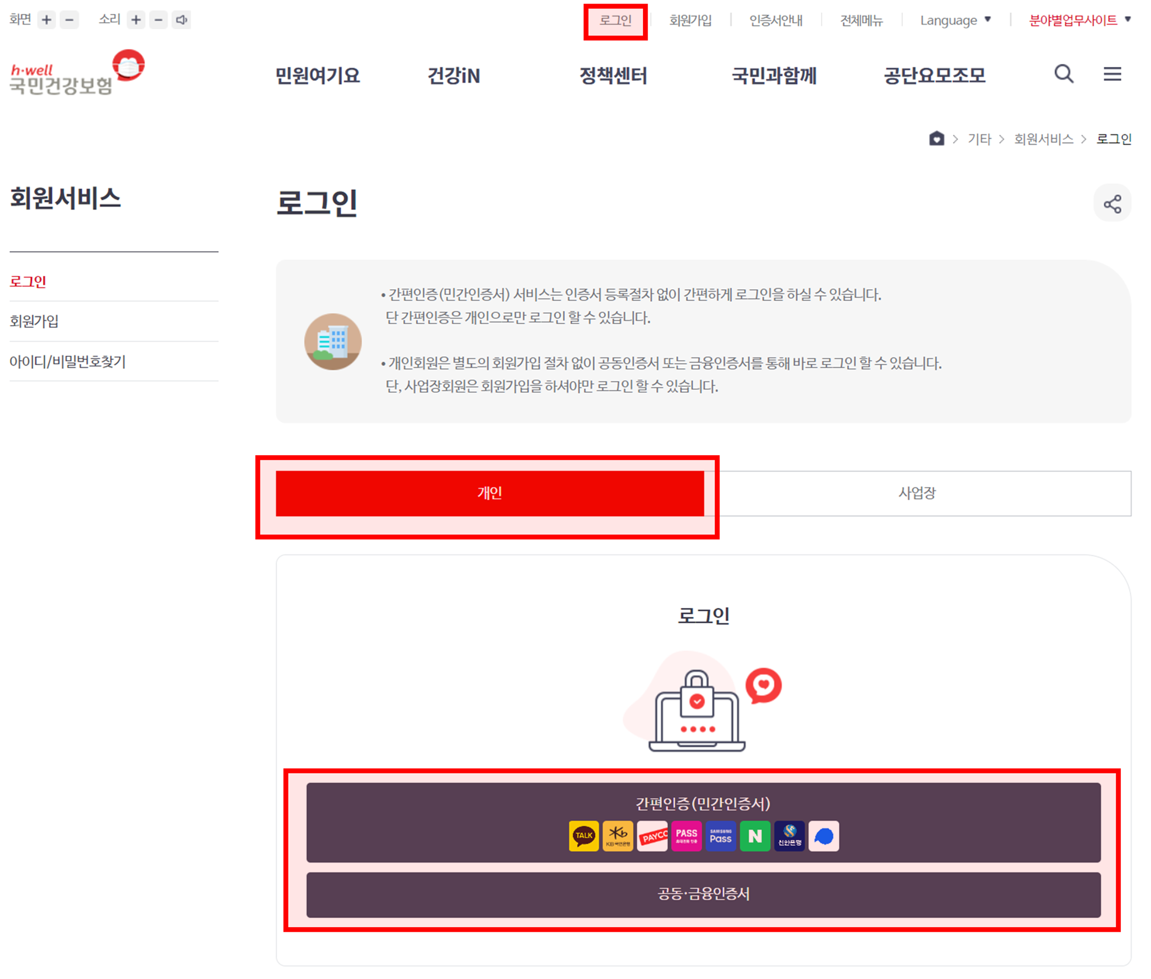 μ°μ , μ μ²νμ λμ κ°μ΄ κ΅λ―Όκ±΄κ°λ³΄ν ννμ΄μ§μ μ μν΄μ£ΌμΈμ.