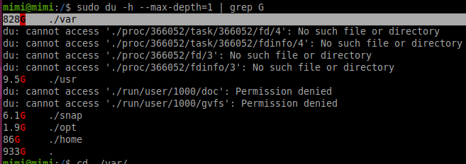 sudo du -h --max-depth=1 | grep G